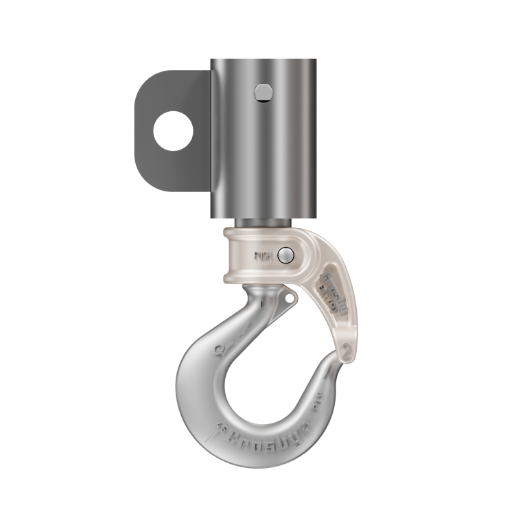 Knight Global’s BPA2113 Pneumatic Balancer Chain Hook connects Air Balancers quickly and securely to fixtures and end effectors. The Hook is equipped with a 1 ton capacity Crosby/Bullard® Golden Gate size 2 Pin-Lok Hook with self closing gate and 360° rotational capabilities.