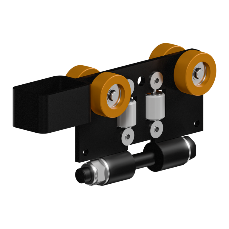 Knight’s EMRTA4194 Low Profile Load Trolley suspends a load from the ERAD4000 Series Rail System. It attaches to the ERail’s conductor trolley.
