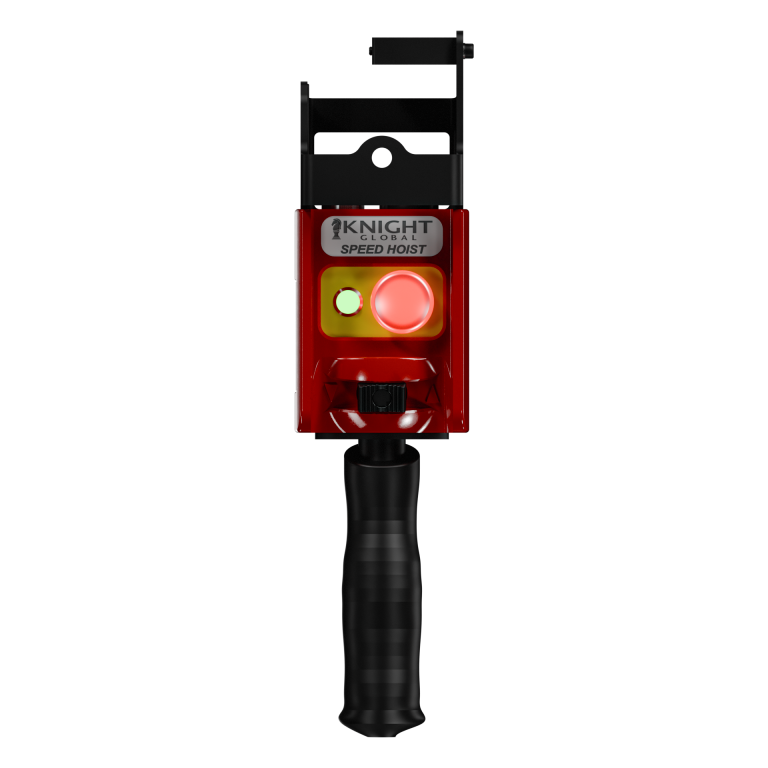The KCA1110 Analog Remote Control Handle for the SDS Speed Hoist has an UP/DOWN rocker switch to control movement and speed of the hoist. This handle provides the user with the ability to easily control movement using the programmable variable speed rocker.