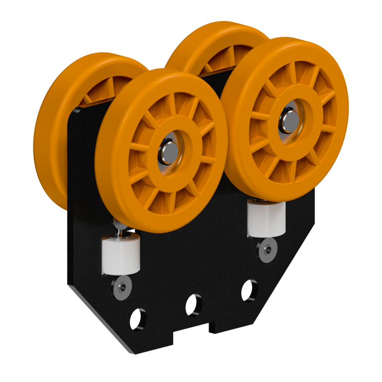 The MRTA7706 Load Trolley suspends Knight pneumatic balancers and fixtures from RAD7510 series aluminum rail systems.