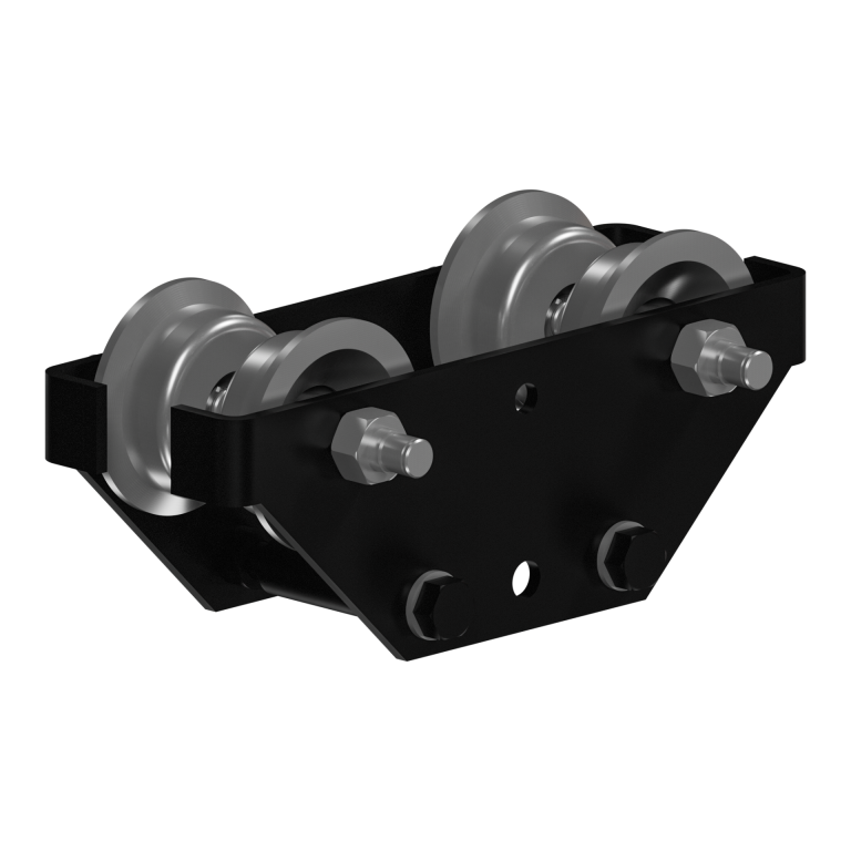 The RTA2013 Load Trolley for W-Beams transfers loads along the horizontal axis and suspends Knight pneumatic balancers by the use of the center mounting holes.