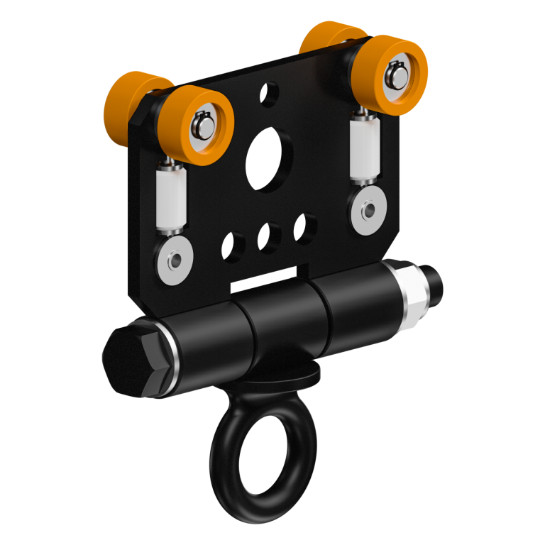 Knight Global’s TRT2003 transfers loads along the horizontal axis and suspends Knight Pneumatic Balancers and Fixtures and Festooning from Knight’s TR2000 Series Aluminum Rail Systems.