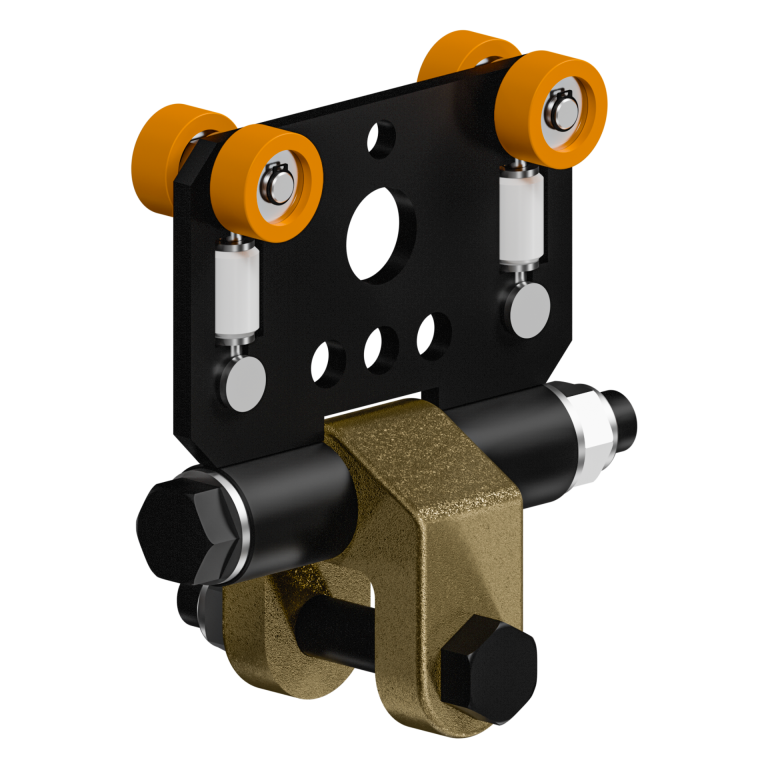 Knight Global’s TRT2009 transfers loads along the horizontal axis and suspends Knight Air Balancers and Fixtures and Festooning from Knight’s TR2000 Series Aluminum Rail Systems. Knight Load Trolleys are manufactured from commercial grade pickled and oiled hot rolled steel with a tensile strength of ± 49 ksi and a yield point of ± 30 ksi.