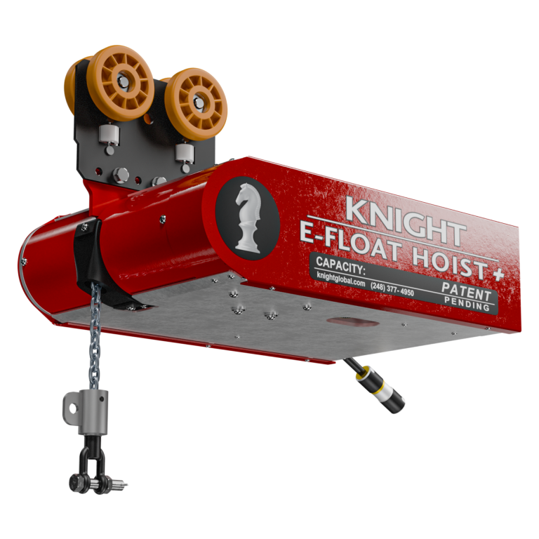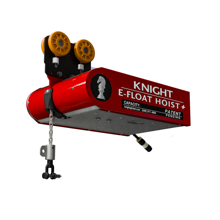FEBRUARY 2026 – Knight’s E-Float Hoist™ is a high-performance servo hoist designed for flexible and efficient material handling. It includes Knight’s intuitive Float Mode without requiring an inline load cell. Its design is very low-profile, reducing stack-up and making it an ideal solution for environments where space is limited. The hoist supports a maximum lifting capacity of up to 300 lbs. (chain).