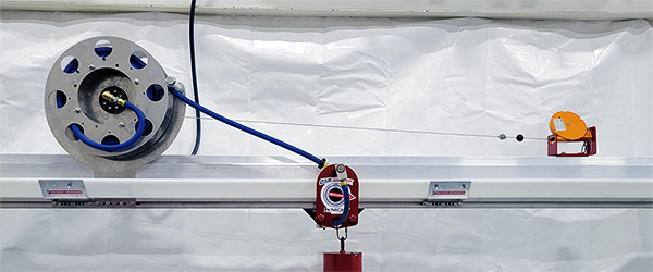 JULY 2023 – Knight’s newest product, the (patent pending) AIR GLIDE HOSE MANAGEMENT SYSTEM is a revolutionary new product designed to eliminate the hanging of festooning / air lines / hoses on aluminum rail. The Air Glide can be used with Knight’s RAD4110, RAD6110, and RAD7510 series rail and it can be attached to any runway or bridge rail. It can also be designed to fit with other manufacturers’ rail. The Air Glide has a significant advantage over coiled hose options as it minimizes pullback force. Zone limits, end of travel switches and rail brakes can be used with the Air Glide System as well. The maximum travel is 100 ft.