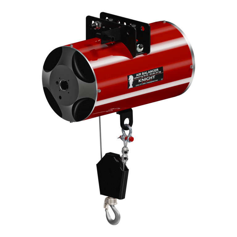 Knight’s Reeved Pneumatic Balancer Series is primarily designed for weights exceeding 450 lbs. [204 kg]. Reeving a pneumatic balancer increases the mechanical advantage of the product, and the stroke length is half the length of a standard balancer.